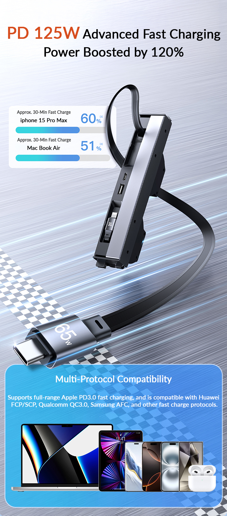 USB Hub Docking Station for Tesla Model Y Juniper/ Model 3 Highland: 125W Ultra-Fast Charging, Smart Temperature Control, Seamless Integration