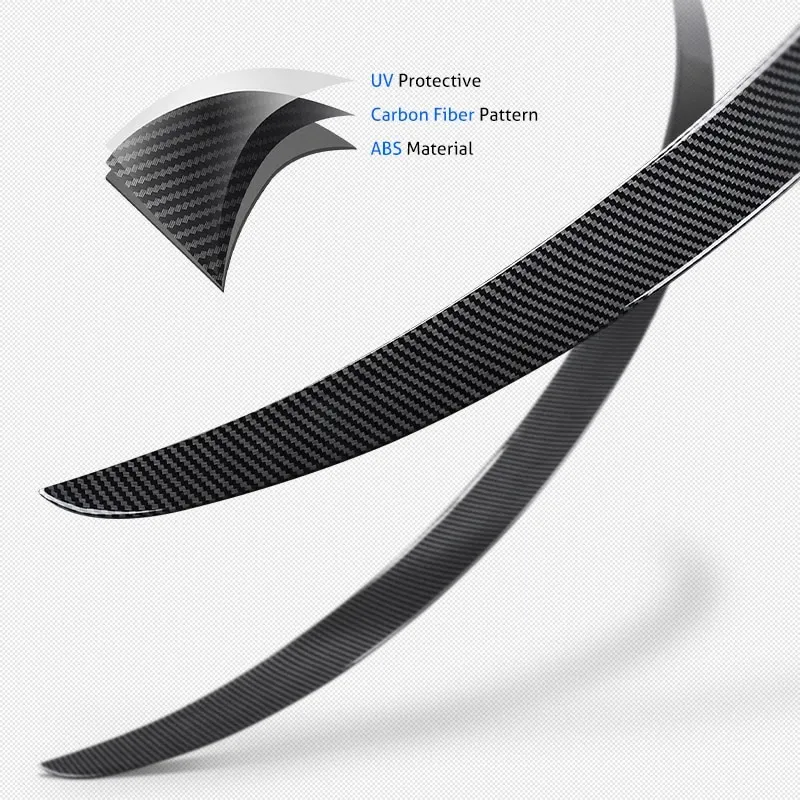 • Material: The Tesla Model 3 Carbon Fiber Spoiler is made of high-quality ABS material, which makes the spoilers light but durable, and the glossy black & carbon fiber patent adds style and luxury to your vehicle.