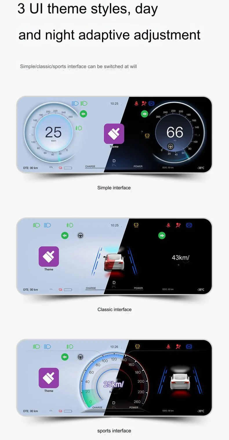 • Display Synchronization: Integrates essential driving information such as time, turn signals, brake status, temperature, and speed, ensuring all key data is easily accessible.