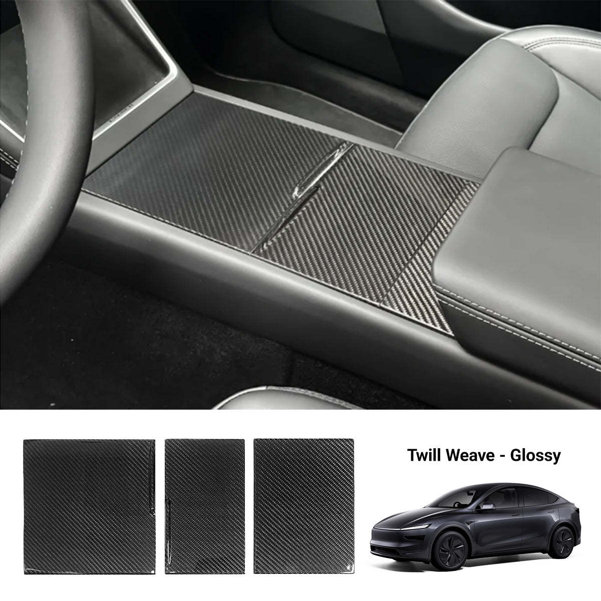 Transform your Model Y Juniper interior with this Real Dry Carbon Fiber Center Console Cover — the perfect combination of protection, style, and high-performance aesthetics.