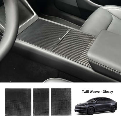 Dry Carbon Fiber Center Console Cover For Tesla Model Y Juniper / Model 3 Highland